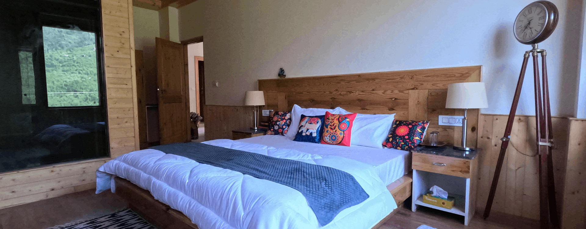 Named after Himachal's famous lakes and mountain passes, our rooms offer a unique experience. On the upper ground floor, the Chandrataal and Surajtaal rooms capture the beauty of the high-altitude lakes, while on the first floor, the Sach, Kunjum, Hamta, and Jalori rooms are inspired by the beautiful mountain passes of Himachal Pradesh. Truly the best mountain view hotel in Manali, Saanjh Retreat promises relaxation surrounded by natural beauty.